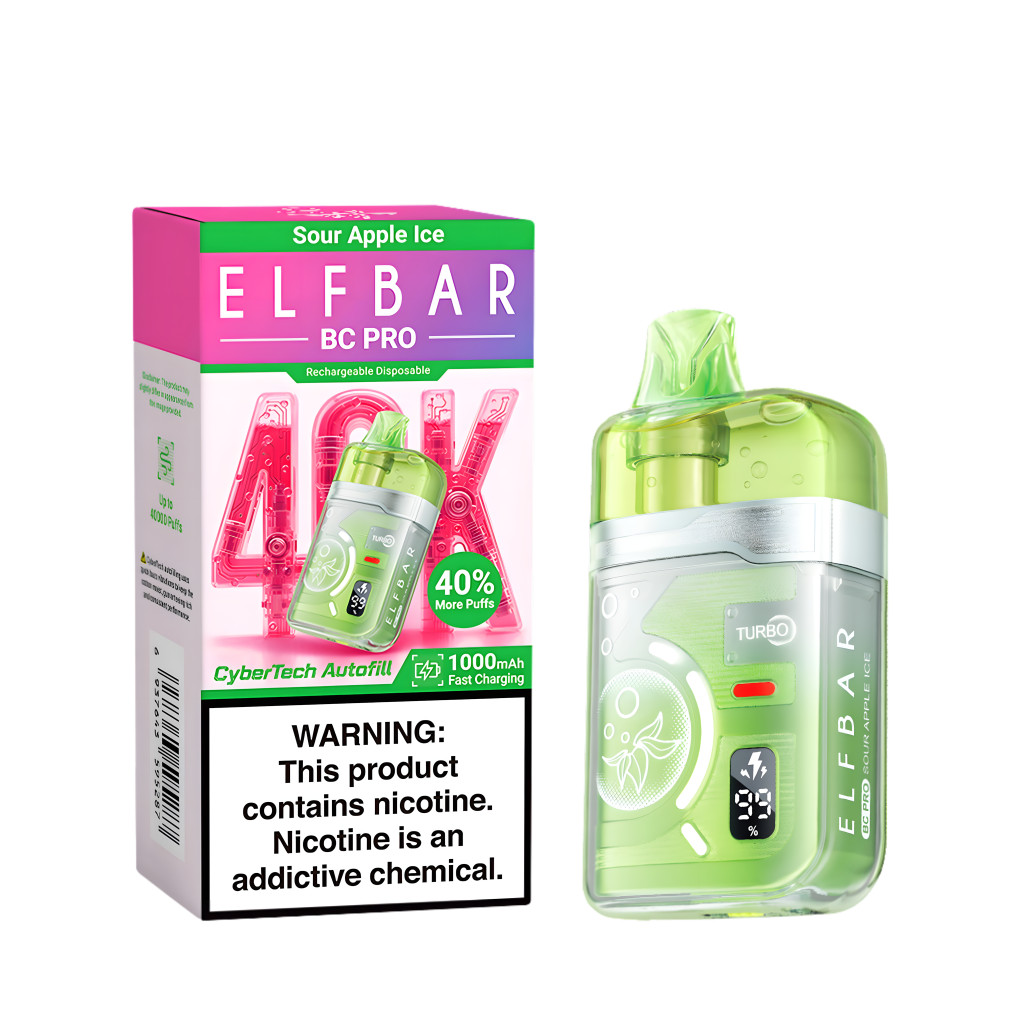 ELF BAR BC40000 PRO - SOUR APPLE ICE 5% - RECHARGEABLE